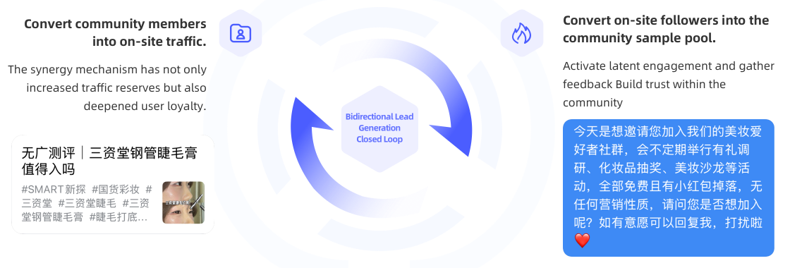 The Xintan RED NOTE account and private domain social community have established a dual-direction traffic loop. On one hand, community members participate in RED NOTE interactions, injecting authentic external traffic to boost account weight; on the other hand, new RED NOTE users are converted into social community, expanding the private domain user base. This interaction mechanism not only increased traffic reserves but also deepened user loyalty, creating a virtuous cycle. We also conduct community giveaways from time to time with low entry barriers (such as following the account), in association with beauty product gifts to attract participation. A single event can activate nearly 40 users, successfully waking up potential activity, gaining positive feedback, and building community trust. Gifts are distributed monthly based on the RED NOTE interaction leaderboard, encouraging users to invite friends and family to join the community, achieving mutual benefits to stabilize baseline traffic through task-based reward mechanism.