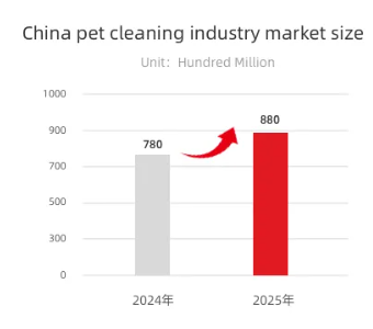 In 2024, the market size of China's pet cleaning industry reached 78 billion yuan. The industry will maintain its growth in 2025, with a projected market size of 88 billion yuan, representing a YoY increase of 12.8%. The cleaning product track of the “It-Economy" is entering into a steady expansion growth period.